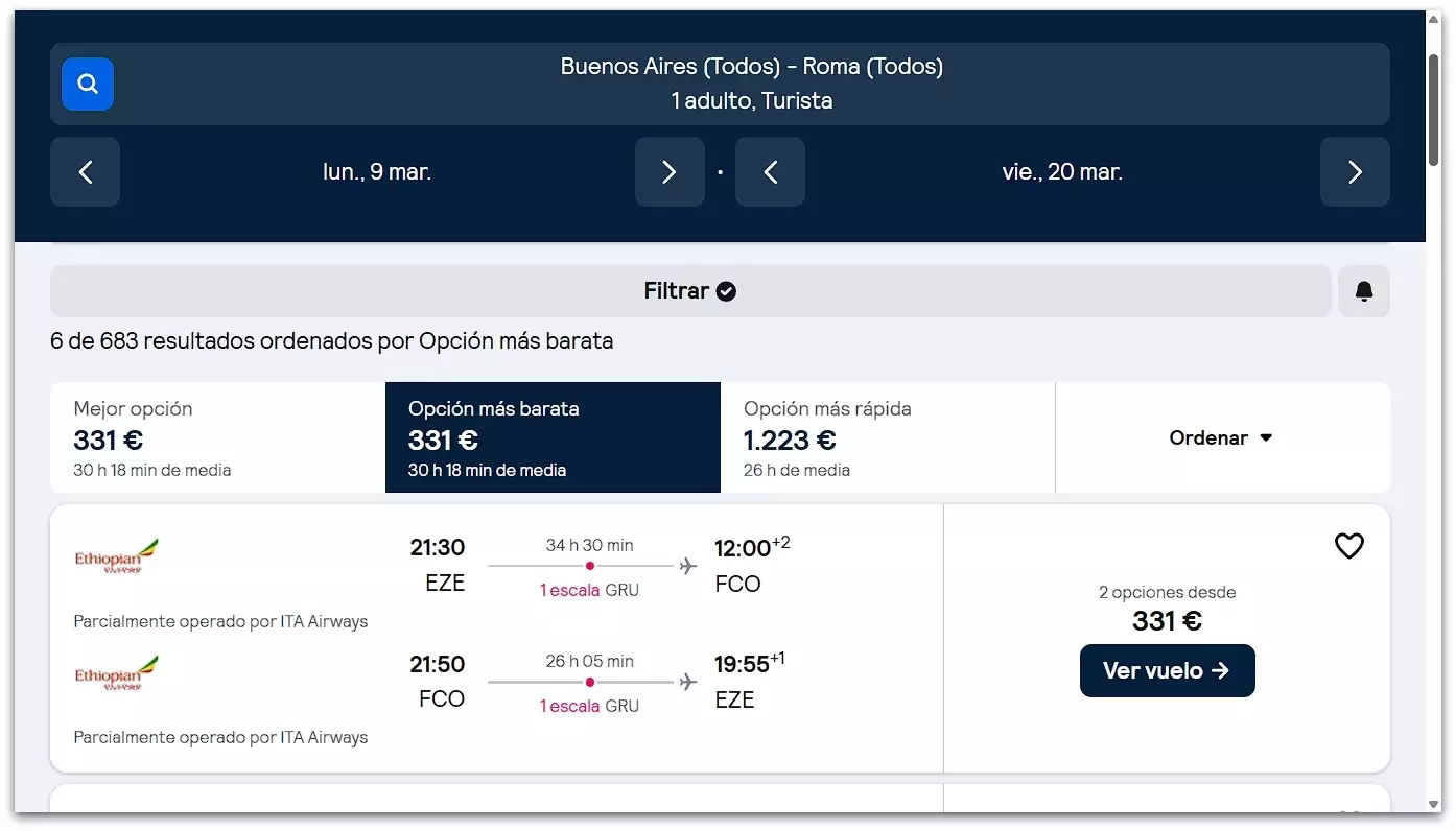 👉 331€ Buenos Aires a Roma, ida y vuelta, saliendo el 09/03/26 y regresando el 20/03/26 – Clic aquí para abrir el buscador de Skyscanner