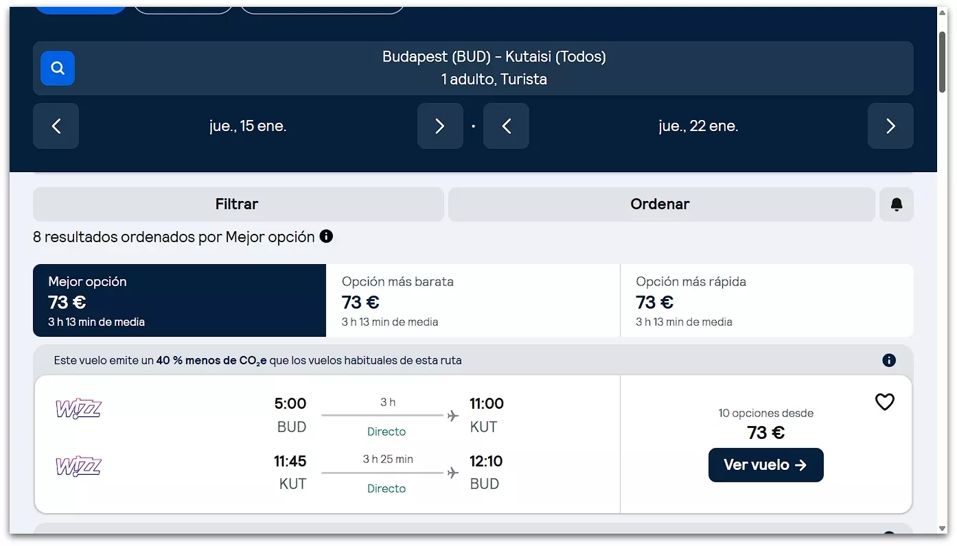 👉 73€ Budapest a Kutaisi, Georgia, ida y vuelta, saliendo el 15/01/26 y regresando el 22/01/26 – Clic aquí para abrir el buscador de Skyscanner